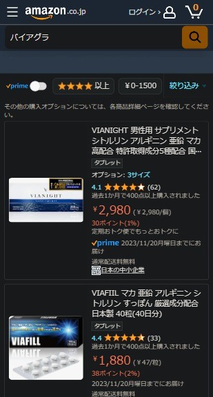amazonで「バイアグラ」と検索するとED治療薬のようなパッケージの様々な商品がヒットしますが、これらはどれもバイアグラでもその他ED治療薬でもありません。