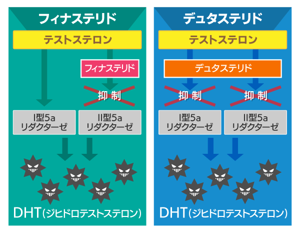 この5αリダクターゼには1型と2型という2種類のタイプがあり、フィナステリドが2型のみに作用するのに対し、デュタステリドは1型と2型の両方に作用します。